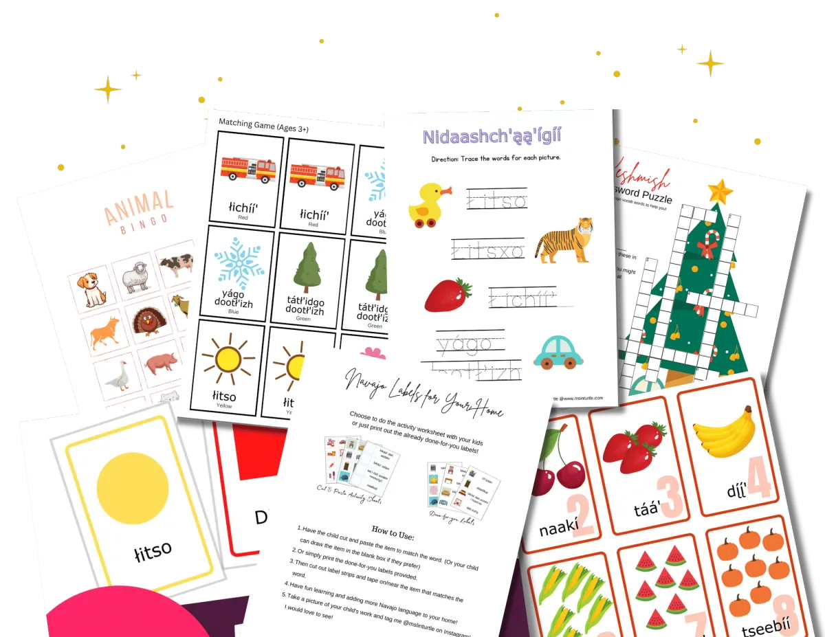 Flashcards and activities for easy Navajo fun and learning at home or in the classroom!